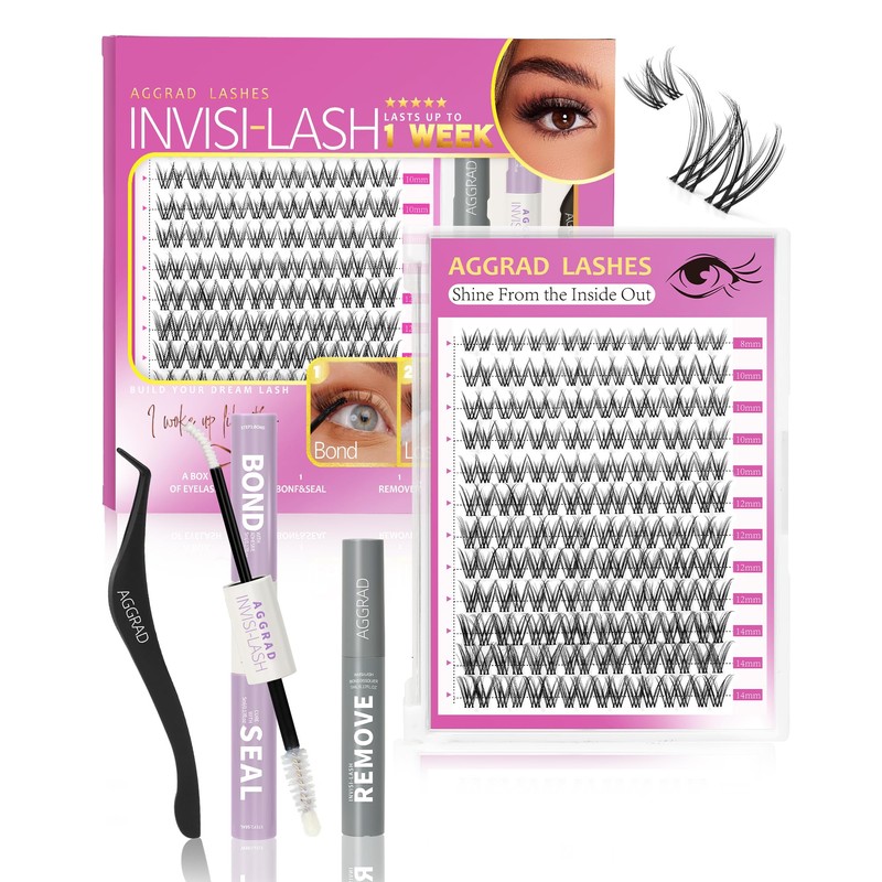 - Premium Invisi-Lash & Born-Soft Fibers: get your desired look in seconds! Individual lashes cluster made from shape-memory PBT, features a 0.05mm ultra-thin invisible clear band lash clusters with the softest fibers, ensuring no kinks and maintaining a stable curl for natural look & comfortable wear all day long.