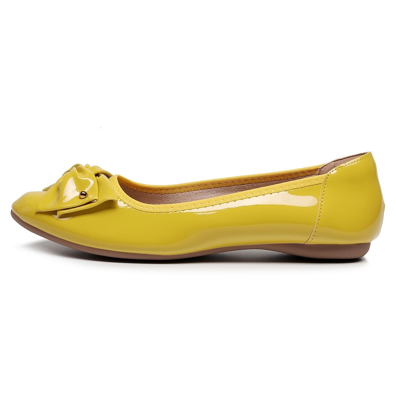 VenusCelia Women's Bows Dance Flat Shoes (7 M US,Yellow Patent)