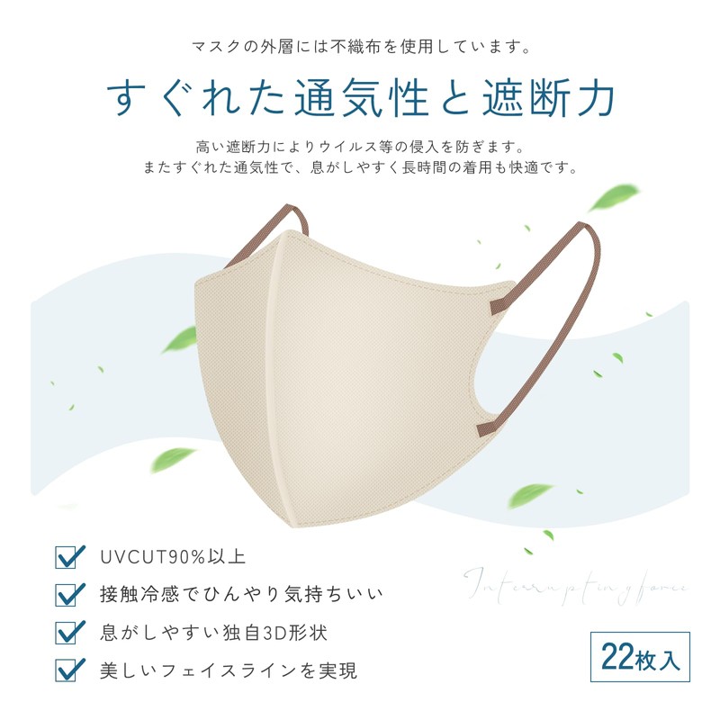 [Venzoza] マスク 冷感 立体 接触冷感 夏用 不織布 3d バイカラー 小さめ 血色 涼しい 通気性 息がしやすい 小顔 面長 丸顏 立体型 使い捨てマスク 22枚 44枚 53枚 56枚