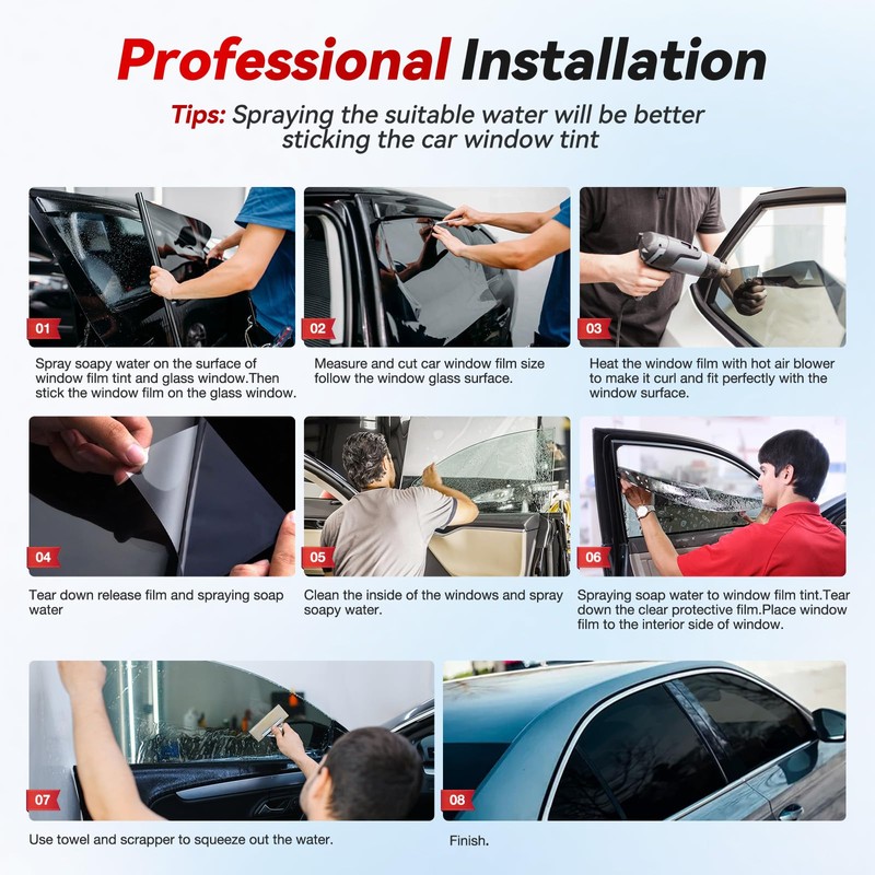 - Scratch Resistant & Explosion Proof- The window tint can better adsorb on the surface of car glass-ensures a safer driving experience for your whole family.