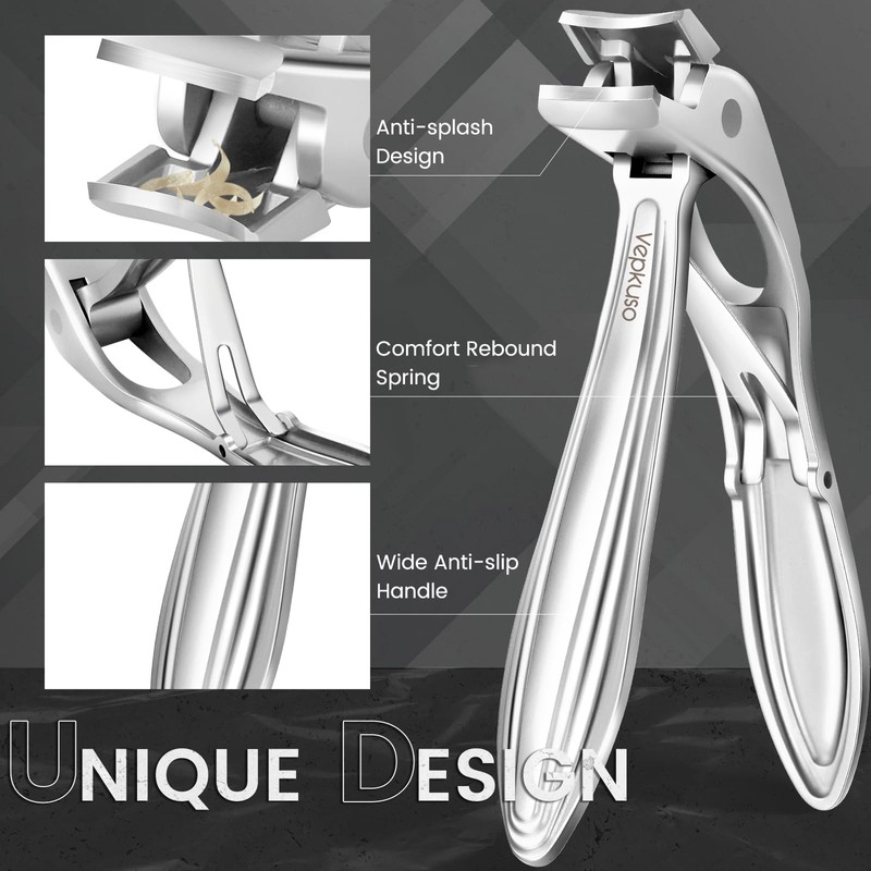 - Hygienic Nail Clippers Set with Anti-Splash Design & Wide Open Jaws: Say goodbye to messy clippings! The angled nail clipper features a built-in catcher to prevent flying debris, while both **toenail clippers for thick toenails and fingernail clippers boast wide-open jaws for effortless cutting of thick nails. A must-have for a complete manicure set focused on hygiene and efficiency.