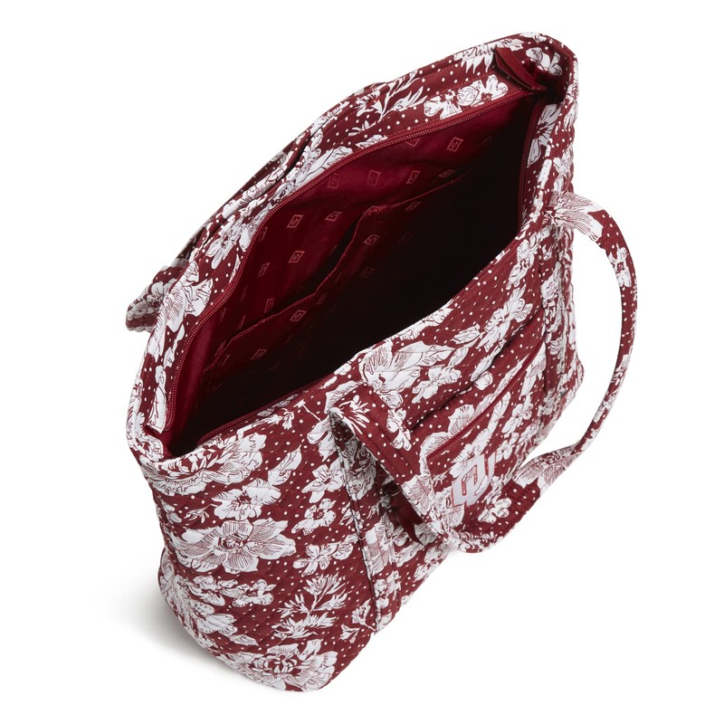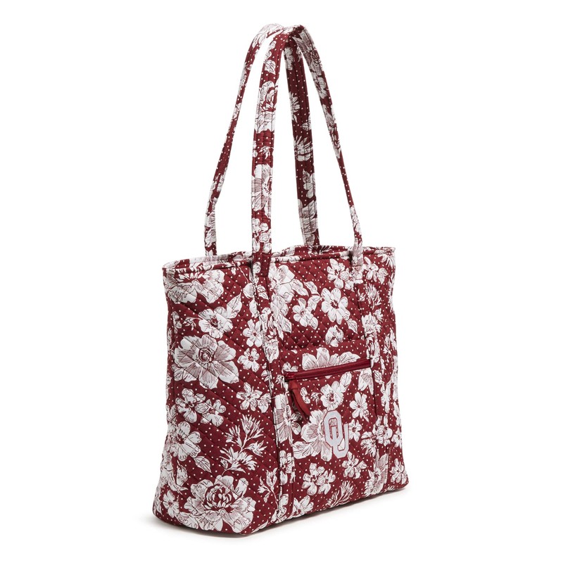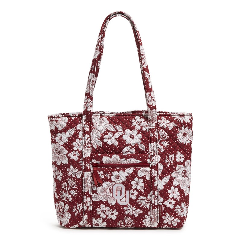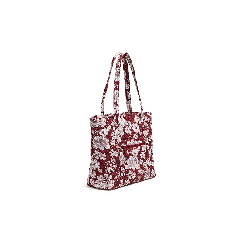 Vera Bradley Women's Cotton Collegiate Vera Tote Bag (Multiple Teams Available), Cardinal/White Rain Garden With University of Oklahoma - Recycled Cotton, One Size