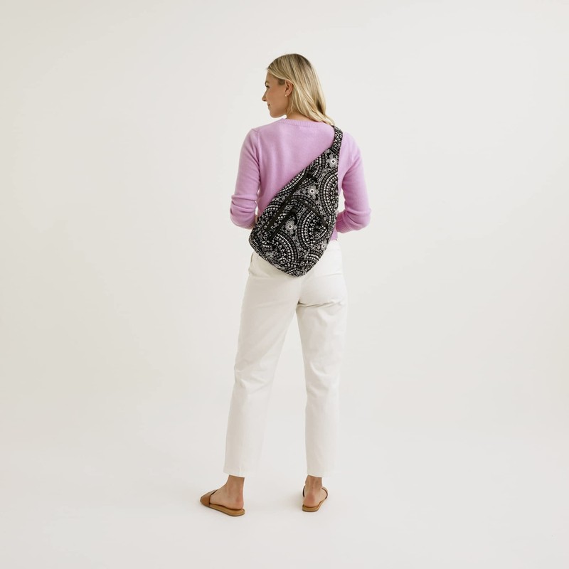Vera Bradley Women's Cotton Sling Backpack, Black - Recycled Cotton, One Size
