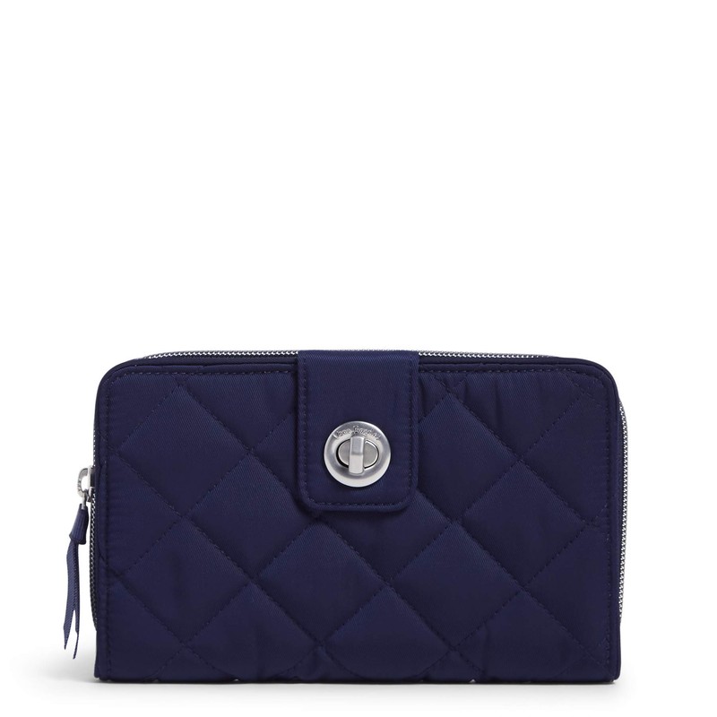 Vera Bradley Women's Performance Twill Turnlock Wallet with RFID Protection, Classic Navy Blue