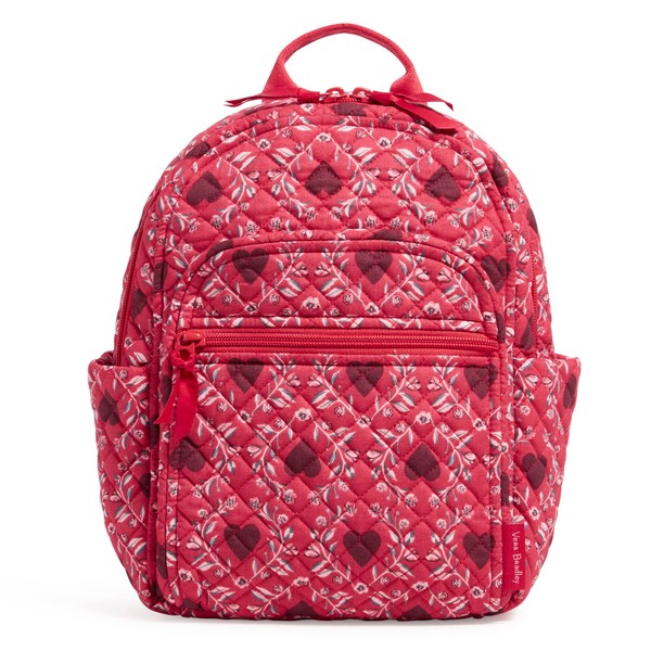 Vera Bradley Women's Small Backpack Bookbag, Imperial Hearts Red-Recycled Cotton, One Size