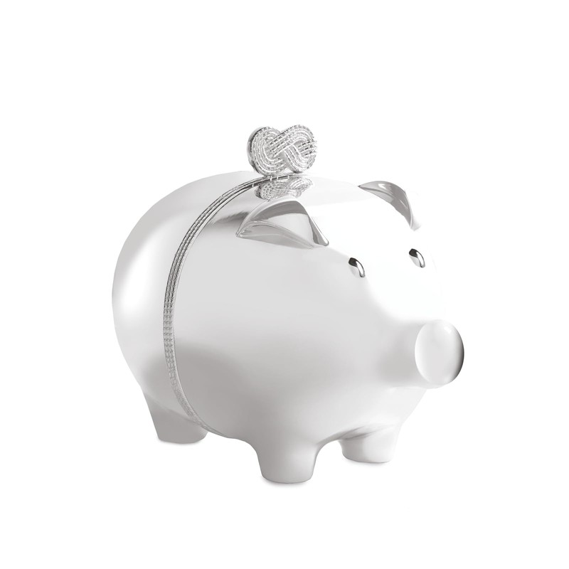 - Teach baby the wisdom of saving for a rainy day with this Vera Wang Infinity beautiful silver plated Piggy Bank.