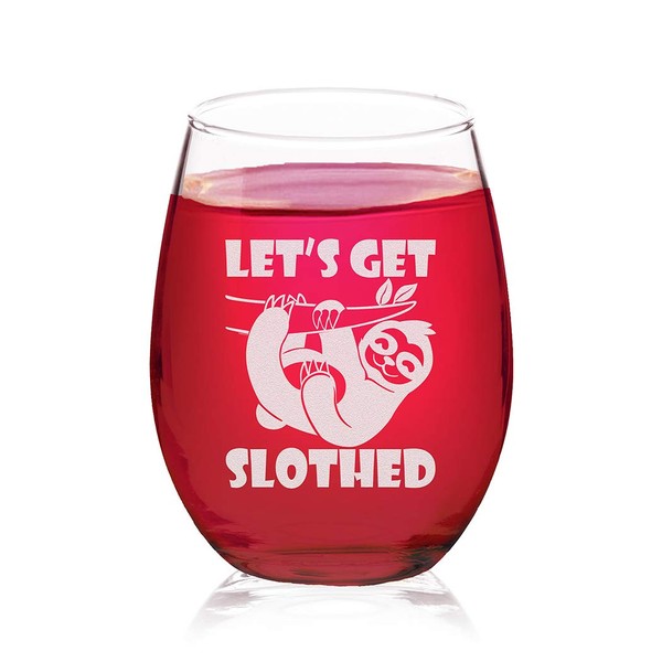 Veracco Let's Get Slothed Stemless Wine Glass Funny Birthday Gift For Someone Who Loves Drinking Bachelor Party Favors (Clear, Glass)