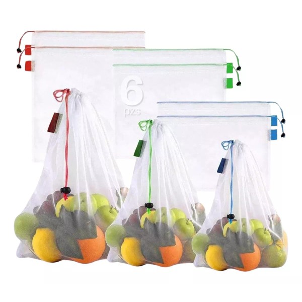 6 PIEZAS - Bolsas Ecológicas Veraly Reutilizables Malla Lavables Para Guardar Fruta Verduras Super