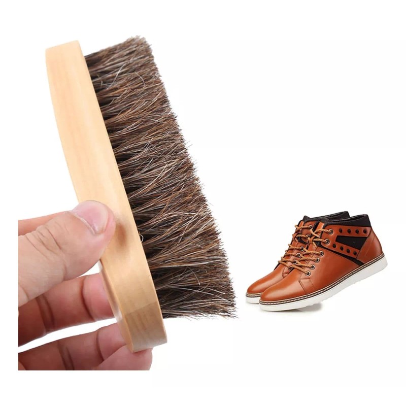 Las cerdas del cepillo de zapatos están hechas de pelo de caballo natural. La melena de caballo es de 0.8 pulgadas de largo y moderadamente firme. Las cerdas tienen propiedades antiestáticas y una fuerte absorción de agua, que puede limpiar profundamente el polvo, el barro, el pelo, las pelusas, las manchas de agua, las manchas de aceite, los residuos, etc. Al mismo tiempo, te ayudará a pulir tus zapatos de cuero más rápido y más duro. Al mismo tiempo, no rayará tus delicados y sensibles tejidos de cuero.