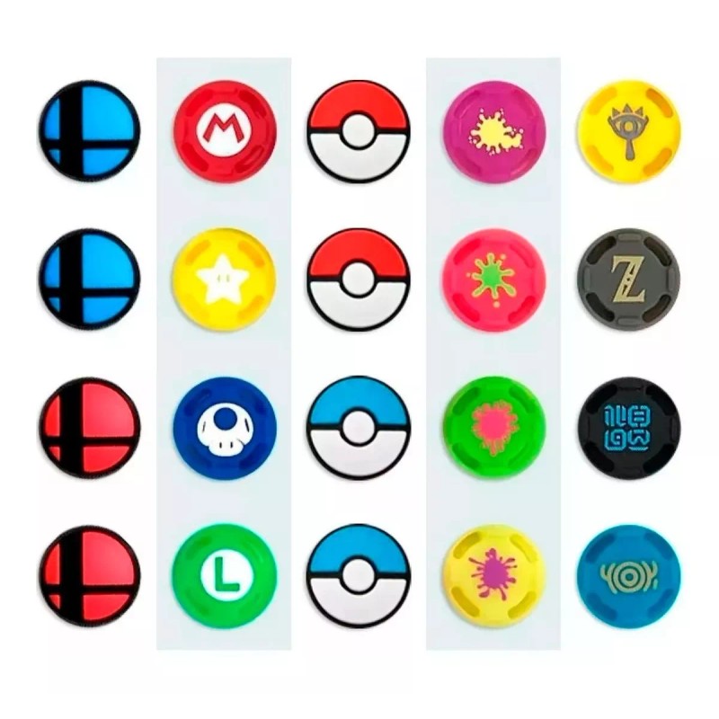 Cada set consta de 4 piezas únicas (no 4 pares) referentes a tus sagas favoritas. para que además de cuidar tus joysticks, decores tu Switch. Los sets están preestablecidos y no pueden personalizarse. Sólo puedes elegir de qué juegos deseas que sean.