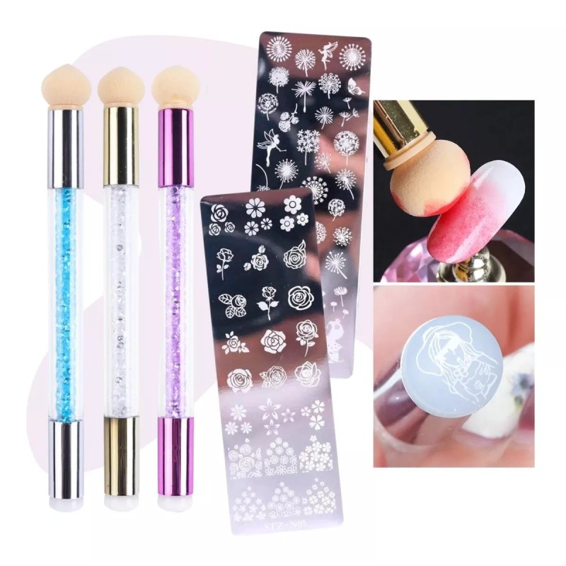 Set Pincel de Estampado para Uñas + 1 placa de Sellos Full