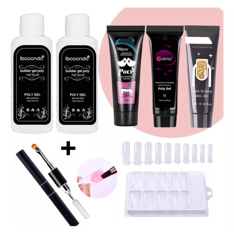 Veraly Kit  Polygel 30ml + Cepillo Y Espatula + Tips+ Slip Solución