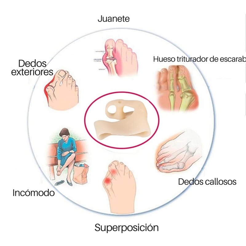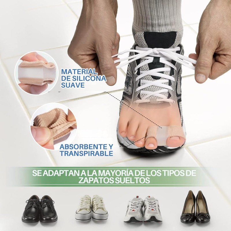 - Alivio eficaz del juanete: estos separadores de dedos de gel proporcionan un alivio inmediato del dolor de juanetes, enderezando el dedo gordo del pie y corrigiendo los dedos superpuestos para una mejor alineación y comodidad de las articulaciones.