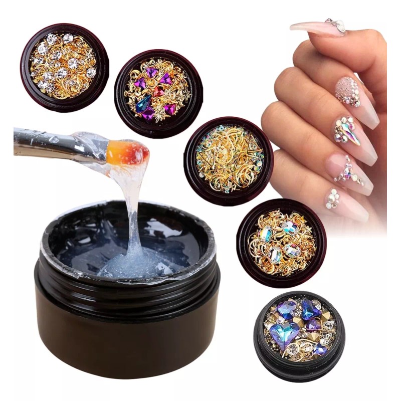 Kit Decoracion Uñas Pegamento + Piedras Cristales Decorativos Full