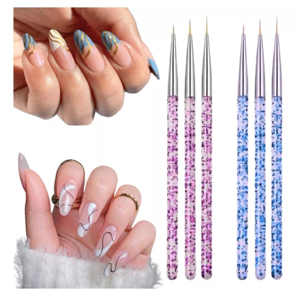 Veraly Pinceles Profesional Para Mano Alzada Decoración Uñas 3pz