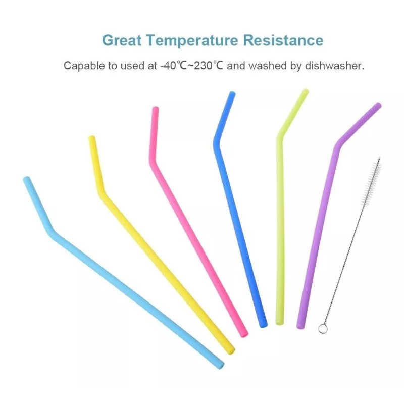 Popotes de Silicona Ecológico 6 piezas con Cepillo Limpiador