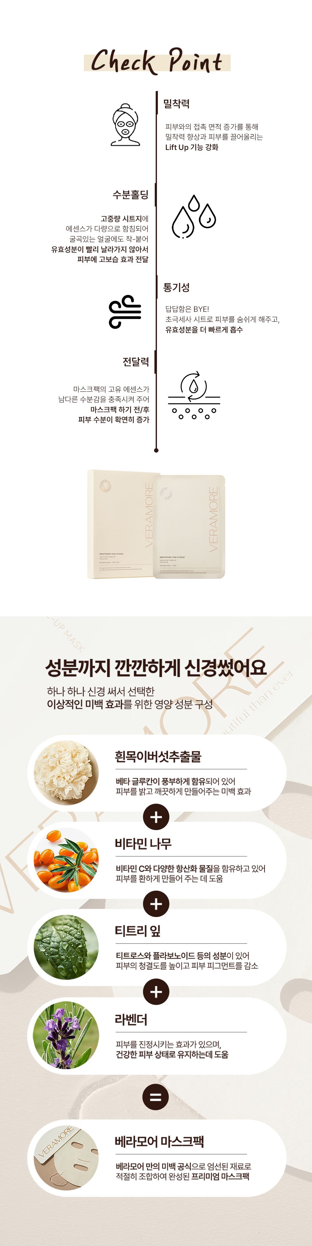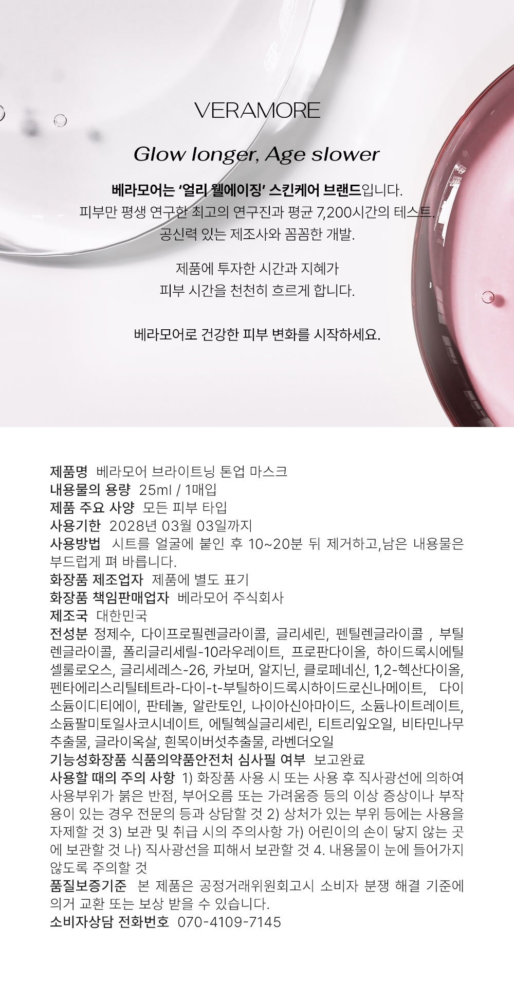 Veramore 브라이트닝 톤업 마스크팩 25ml 5매 Brightening Tone-Up Mask Pack 25ml 5 Sheets