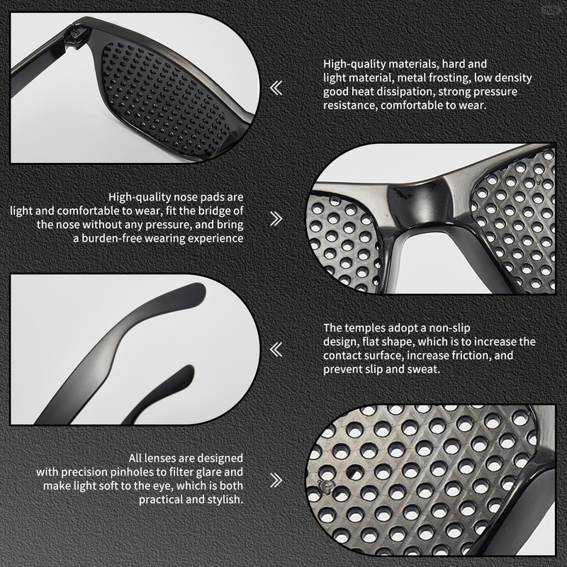 - Discover the ultimate solution for natural vision improvement with our premium 2Pcs Pinhole Glasses Black set. These full frame grid-glasses with small holes represent a breakthrough in non-invasive eye care technology, combining the benefits of traditional pinhole therapy with modern durable design.