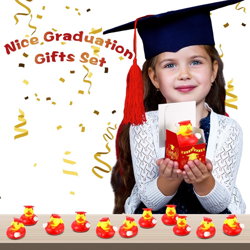 - Versatile and Functional: these delightful graduation rubber ducks and graduation gift boxes double as functional gifts that can serve various purposes; They can be utilized as graduation party supplies, classroom exchange gifts, school prizes or even as heartwarming presents for students from their teachers, thereby enhancing the set's overall value and versatility