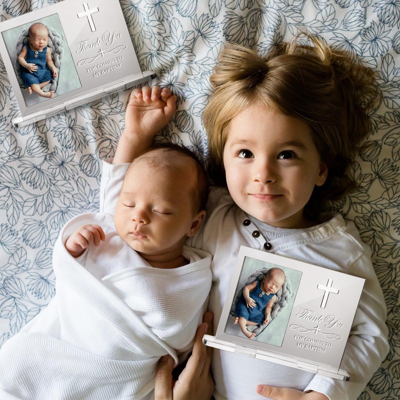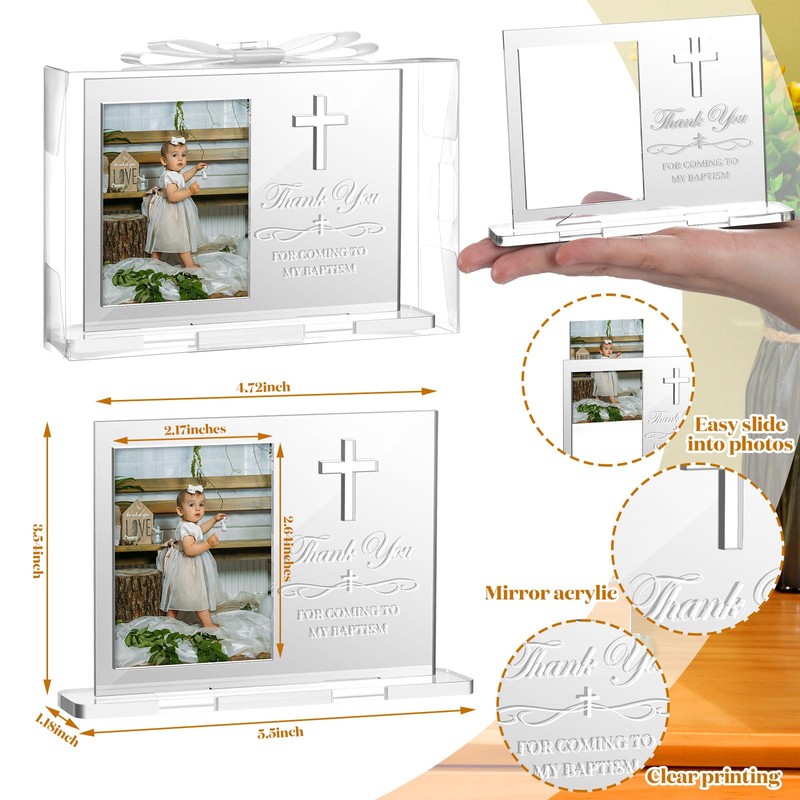 - Delightful Design: this first communion gifts come in the main color of light, giving it a pure and elegant tone; The clear printing on the acrylic, printed with the text "Thank You for Coming to My Baptism", coupled with its smooth surfaces, provides a clear view, suitable for displaying your cherished photos, enhancing your home or workspace's aesthetic; The beautiful cross printed on the picture frame stand design signifies faith and blessings
