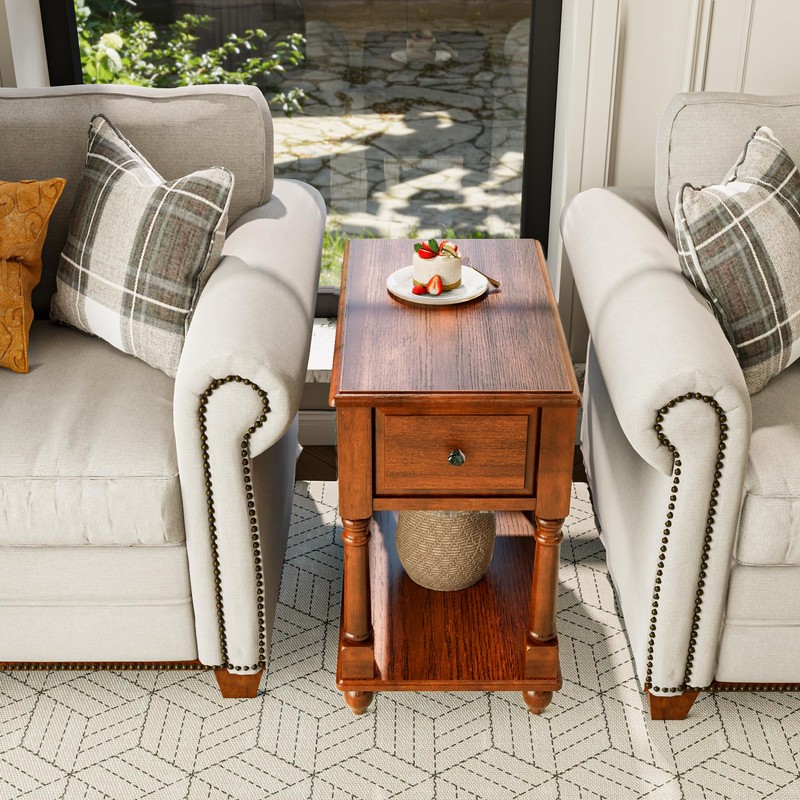 VERDANTREE Narrow End Table with Drawer and Open Storage Shelf, Solid Wood Sofa Side Table for Living Room, Beside Table,Telephone Table for Small Spaces, Easy Assembly Caramel Brown BBJ004DR