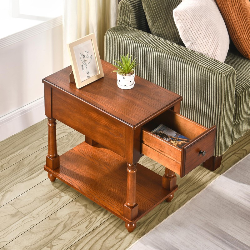 - Stability And Durability End Table:The entire side table features Roman column legs, a thickened tabletop, and sturdy wood that is visually appealing, resistant to insects and corrosion, highly pliable, and less prone to deformation and cracking.The max capacity is 120 Lbs. The vintage metal handles combine nature and art, offering a fashionable and durable touch. The table legs crafted from high-quality solid wood are hard, strong, corrosion-resistant, and wear-resistant.