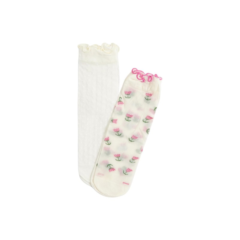Verdusa Women's 2 Pairs Ruffle Socks Sheer Mesh Socks Thin Transparent Ankle Socks Beige and Pink One-Size