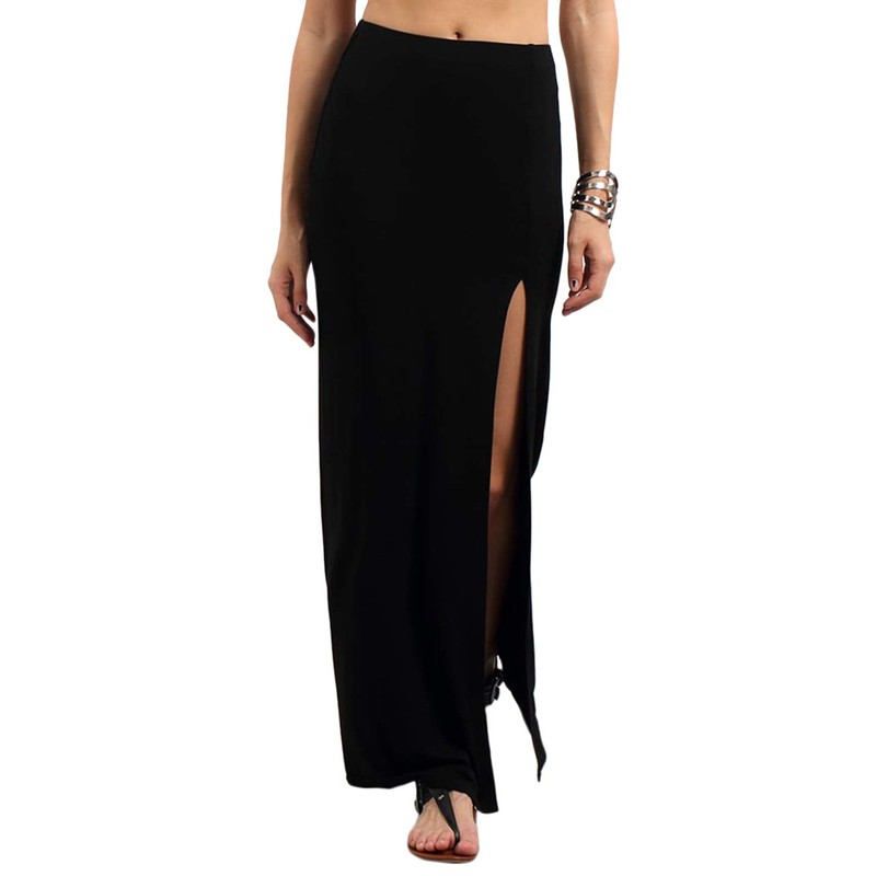 Verdusa Women's Solid Color High Waist Side Split Maxi Skirt Black XS