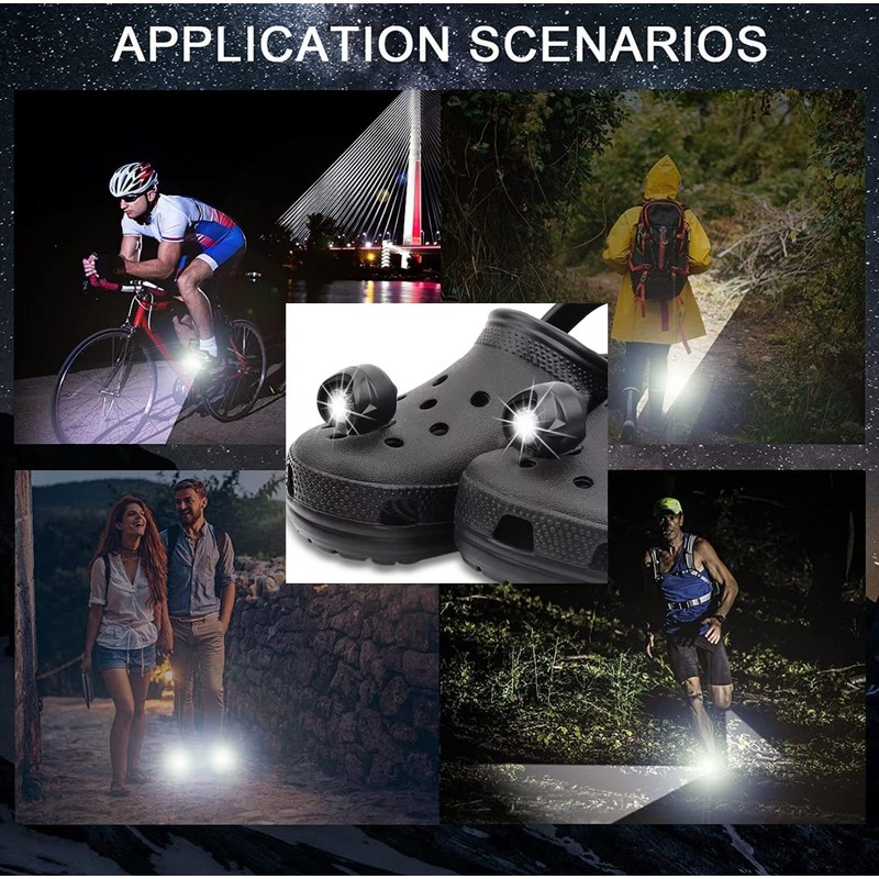 - Rechargeable Headlight Compatible with Croc Shoes: Our headlamps have built in rechargeable batteries which can be recharged via USB port, reusable for more than 10,000 hours, practical. Package comes with 2 headlights, charging cable is included in the package