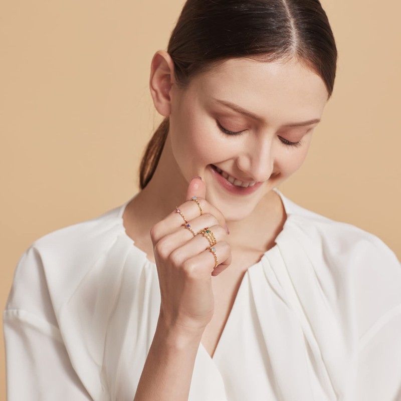 Vergoldete Geburtssteinringe für Damen, Herz-Gold-Stapelring, 925 Sterling Silber, handgefertigte Freundschaftsringe, Geburtsstein April, Größe 54 (Gold)