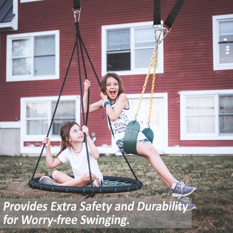 - Enhanced Safety: Built to withstand the test of time, The carabiners, swivel hook, and D-rings are constructed from high-quality stainless steel, providing exceptional strength and durability. It Withstands 5,000 lbs heavy loads to accommodate users of all ages and sizes, ensures secure attachment, and prevents straps from coming off while swinging. It will maintain its quality and performance even after prolonged use, ensuring countless hours of swinging enjoyment.