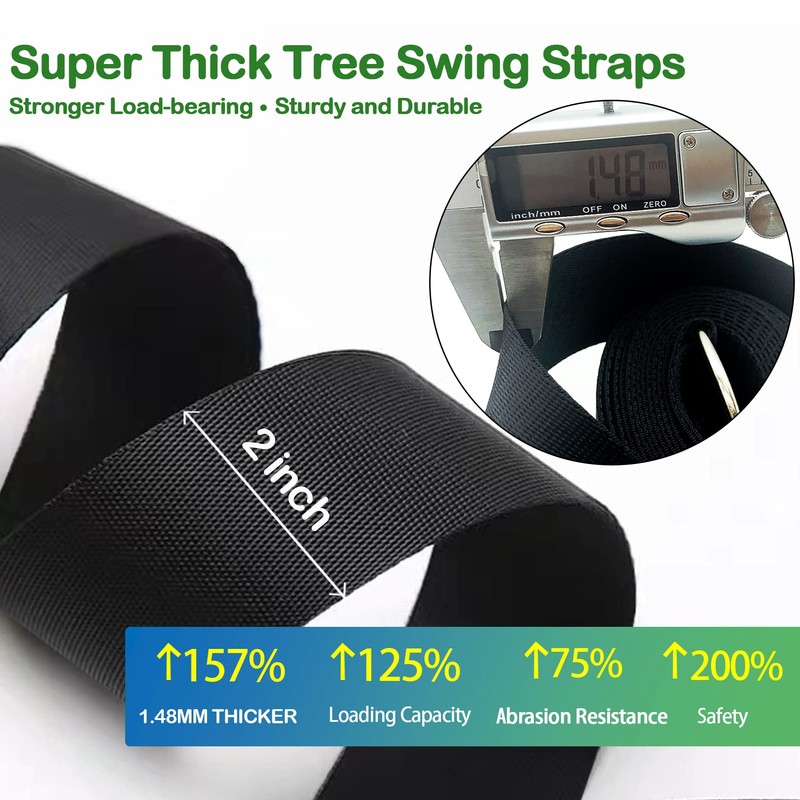 - Ultra-Durable Design: Made with 1.48mm thickened commercial grade nylon, twice as thick as others, ensuring maximum strength and reliability for all your outdoor needs. Veriluck tree swing straps feature reinforced stitching on the D-ring fabric loops, providing a strong and durable connection that won't tear apart at the seams, ensuring a safe and long-lasting playtime experience. Provides extra safety and durability for worry-free swinging.