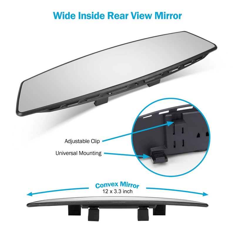 • Convex Wide Angle View: This rearview mirror is designed with a convex, curved lens to expand viewing range, while enhancing the driver's view of blind-spots and encouraging safer driving.