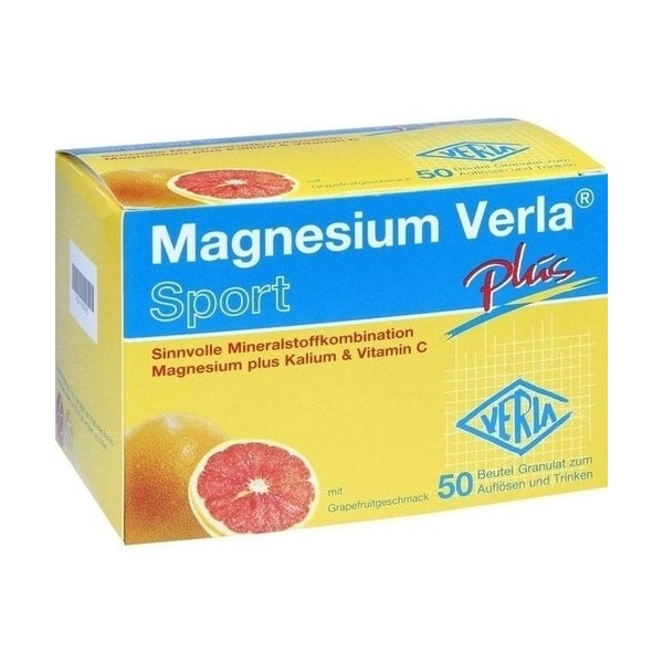 Verla® Magnesium plus contains magnesium as well as the mineral potassium. In addition, the product is supplemented with vitamin C. This combination is ideal for athletic muscles, because both minerals are required for proper muscle function. In addition, magnesium and potassium are lost through exercise in sweat and urine. Verla® Magnesium plus contains 150 mg magnesium and 300 mg potassium per sachet of drinking granules and thus helps to meet the increased need in a targeted manner. When dissolved in water, for example in the drinking bottle for on the go or as the first thirst quencher after exercise, it tastes refreshingly of grapefruit .