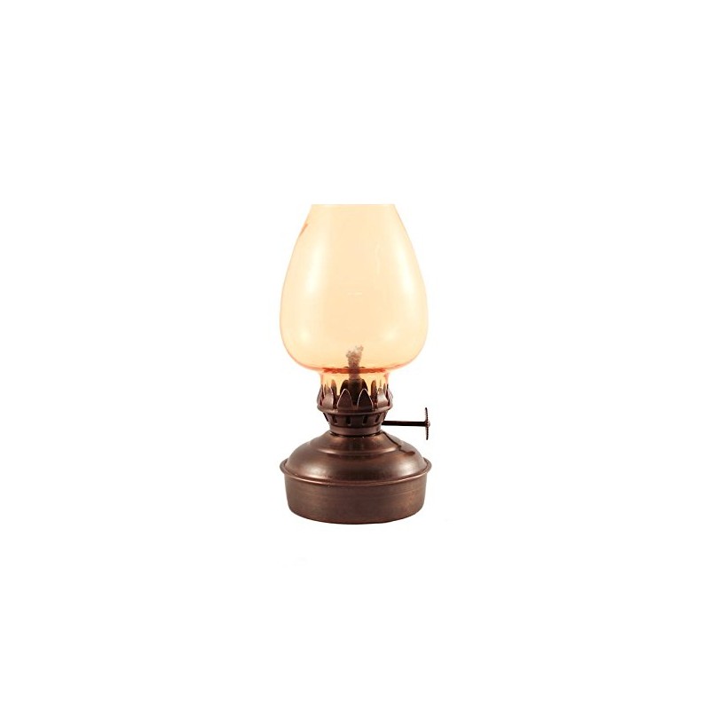 Vermont Lanterns Brass Mini Small Oil Lamp 5.75" (Antique with Amber Glass)