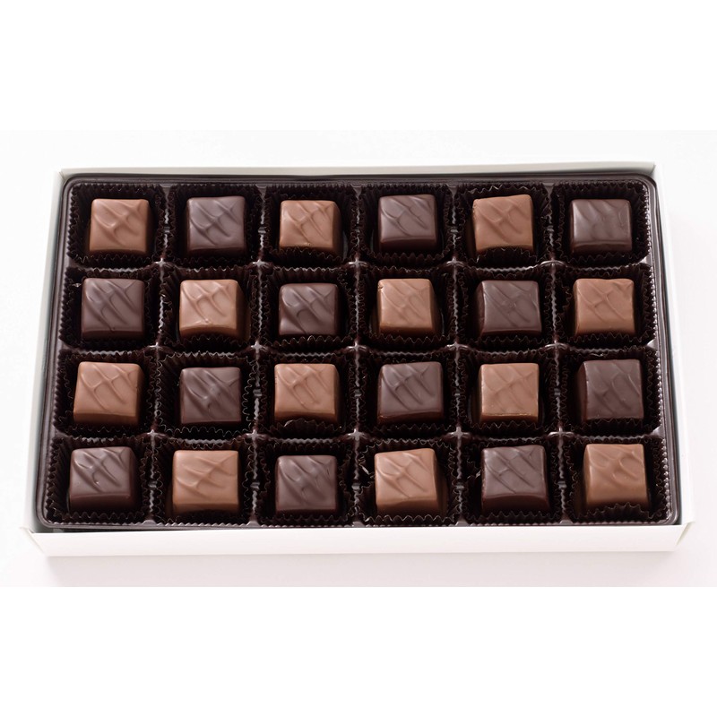 - Includes a 24-Piece box of our nut free Assorted (Milk & Dark) Chocolate covered Caramels