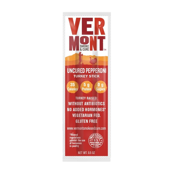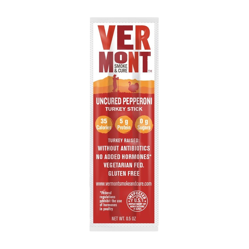 Vermont Smoke & Cure uncured pepperoni Turkey sticks offer a fresh take on a classic pantry staple. Our Uncured Pepperoni Turkey sticks are crafted with lean turkey, peppers, paprika and garlic for nourishing real meat protein.