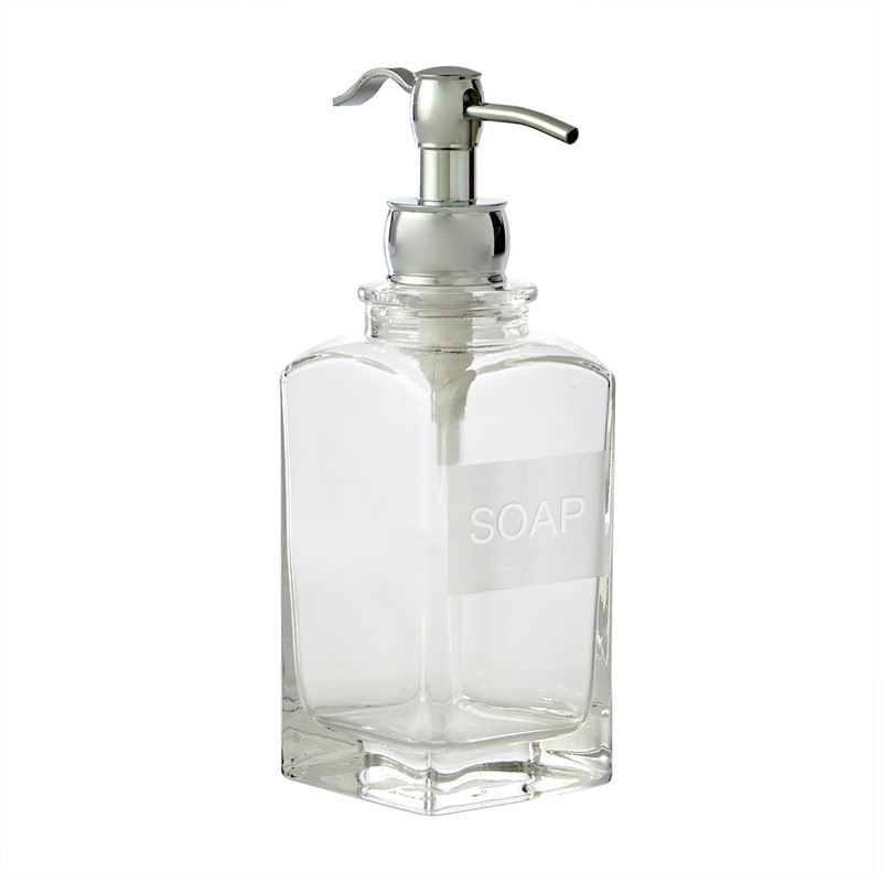 - Glass dispenser etched with "SOAP"