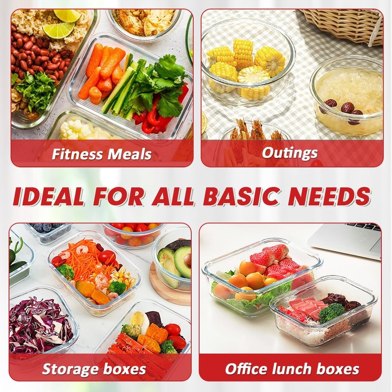 - GLASS MATERIAL EXCELLENCE IN QUALITY: Glass meal prep containers are made of high quality borosilicate glass, for oven, microwave, dishwasher and freezer. Stronger than normal glass food storage containers, food can be stored in glass containers directly after cooking. The containers are versatile to meet your everyday food storage needs, suitable for use in prep meals at home or whatever you need for the occasion