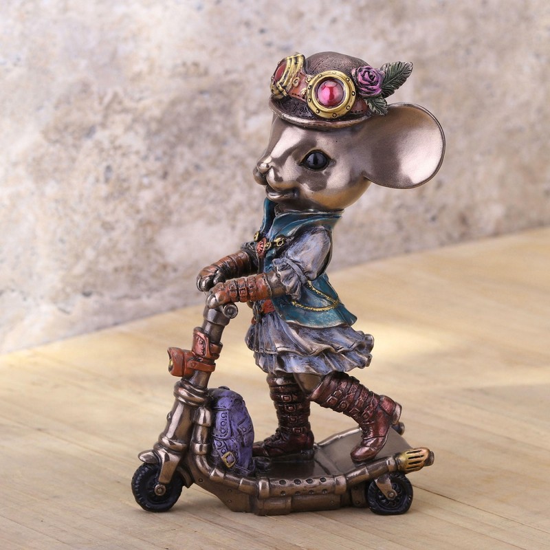 Veronese Design 5 1/2 Inch Steampunk Mice Scooter Racer Cold Cast Resin Bronze Finish Animal Collectible Figurine