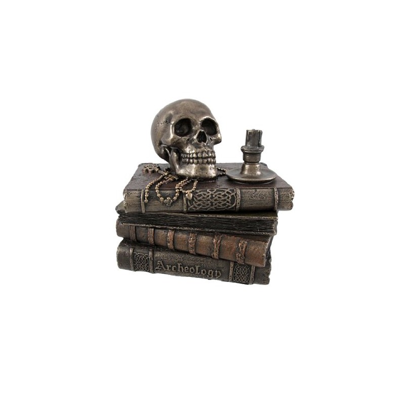 Veronese Design Bronze Wizard`s Study Books and Skull Trinket Stash Box