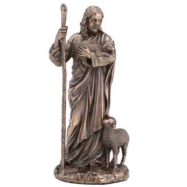 Veronese Design Jesus The Good Shepherd Religious Decoration Cold Cast Resin Bronze Technique 6.5"