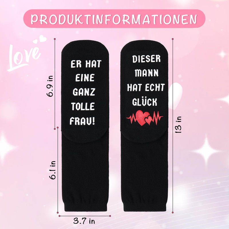 - Pair of socks for men: make a mark with our funny sayings, stylish and cheeky socks with a unique design and heart pattern: "This man is really lucky, he has a very great woman!