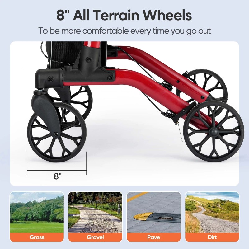 VERPAL Folding Rollator Walker Aluminum Rolling Walker 350LBS Capacity 8'' Wheel