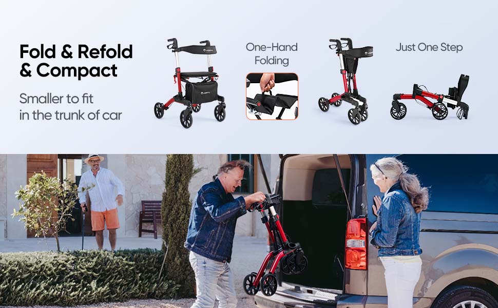 • Features 2: Double-folding, Ultra-compact Rollator Walker