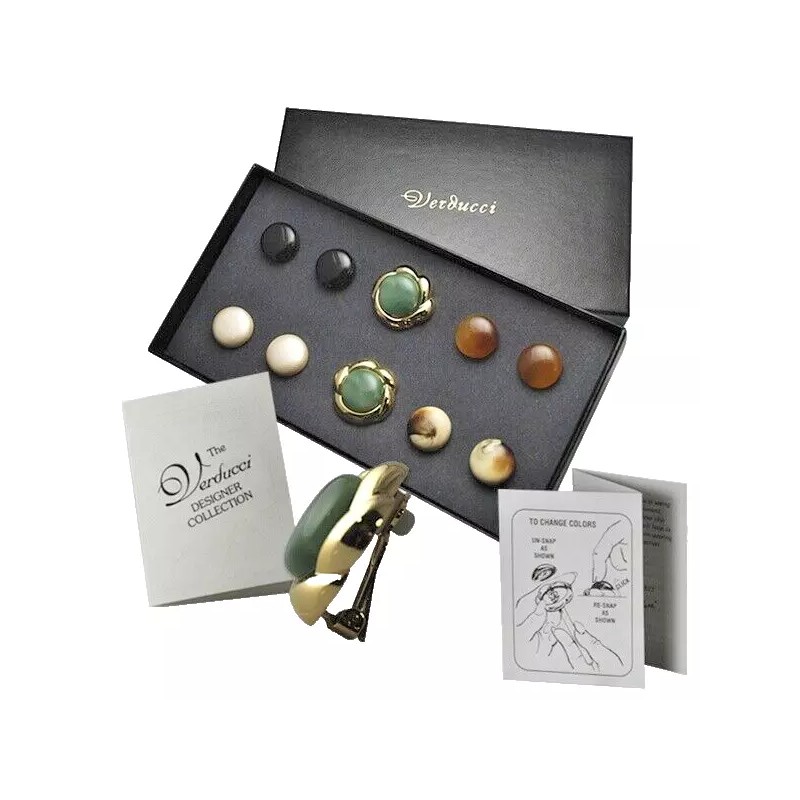 Elevate your style with these stunning Verducci interchangeable earrings. These earrings feature a magnetic setting style that makes them easy to wear and interchange with other gemstones. The earrings are made of yellow gold plated brass with a gold plate finish, and they come in a classic round shape with a 1-inch diameter. Perfect for any occasion, these earrings have a timeless appeal that makes them a great addition to any jewelry collection. Whether you're dressing up for a wedding, graduation, or birthday, these earrings will add a touch of elegance and sophistication to your outfit. With ten beautiful gemstones that look like real gems, these earrings are a must-have for any fashion-forward woman.