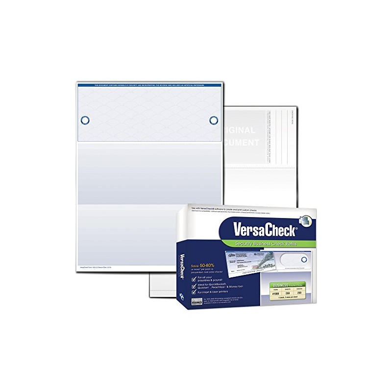 VersaCheck UV Secure Checks - 250 Blank Business Voucher Checks - Blue Elite - 250 Sheets Form #1000 - Check on Top