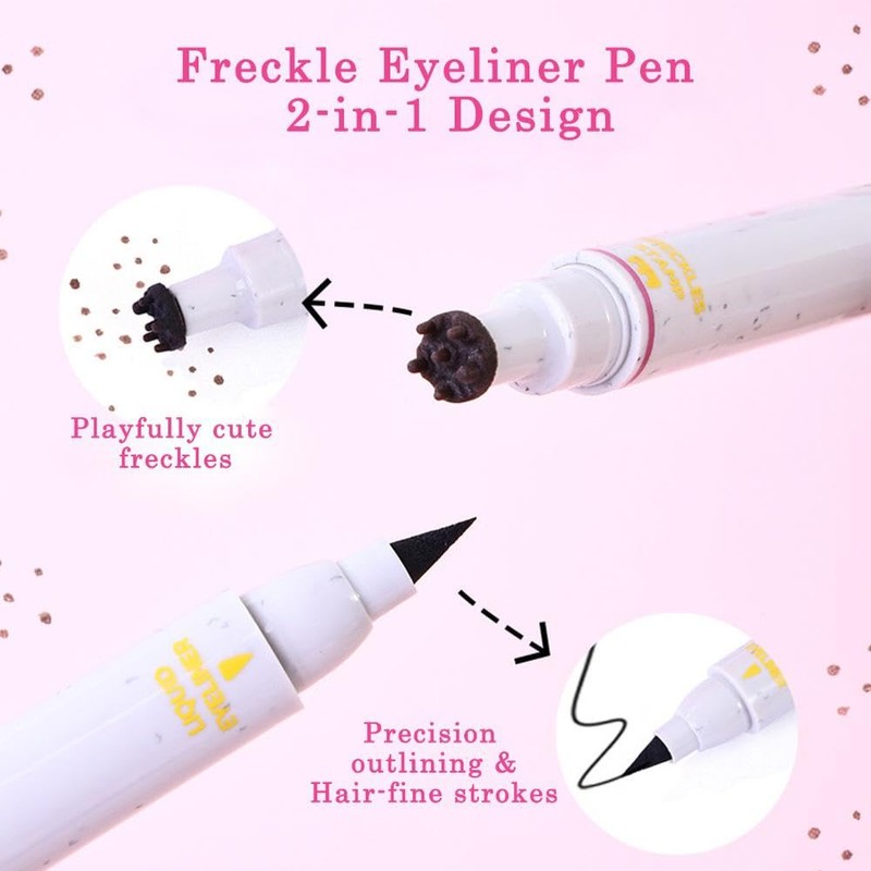 - 🌸[Versatile 2-in-1 design] This innovative eyeliner freckle pen combines a precision liquid eyeliner with a natural-looking freckle stamp, allowing you to create both defined eye lines and delicate faux with one convenient product. The dual- design saves space in your makeup bag while providing two essential beauty tools for effortless everyday makeup application.