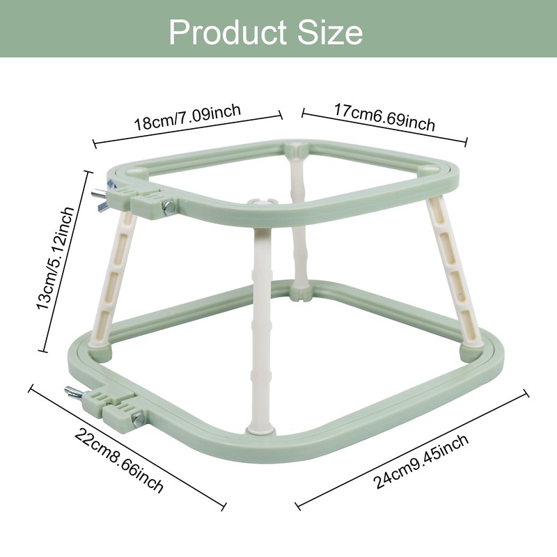 - Versatile Embroidery Stand: This embroidery frame is trapezoidal structure, the size of the bottom embroidery frame is 24x22cm/9.44x8.66in, and the size of the upper embroidery frame is 18x17cm/7x6.7in, which can satisfy your diversified needs for embroidery at the same time.