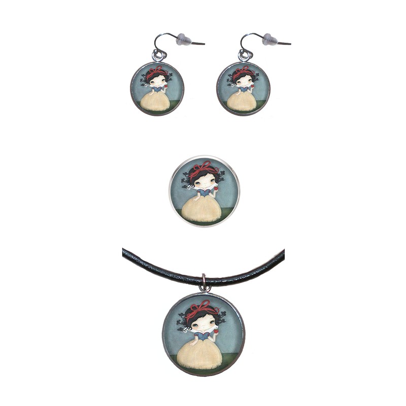 Verstellbarer Edelstahlring, 25mm Durchmesser, Handgemachte Illustration Schneewittchen
